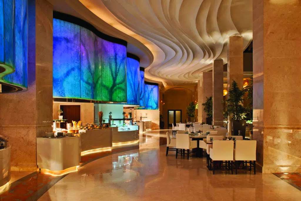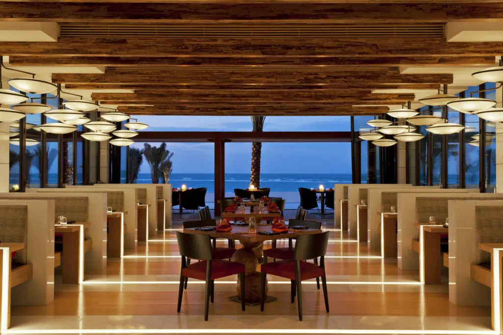 The St Regis Saadiyat Island’s rooms are decorated in a Mediterranean style giving it a real seaside flavour, with lots of turquoise and earthy colours. The spacious bedrooms, filled with daylight, are at least 55 square metres in size with large balconies. The hotel is traditional yet contemporary in design with high ceilings and beautiful views of the gulf. The hotel has a range of restaurants such as the relaxed seafood offering Turquoiz, which is located on the beach, as well as a number of lounges including the Drawing Room where the famous St Regis afternoon tea is served.